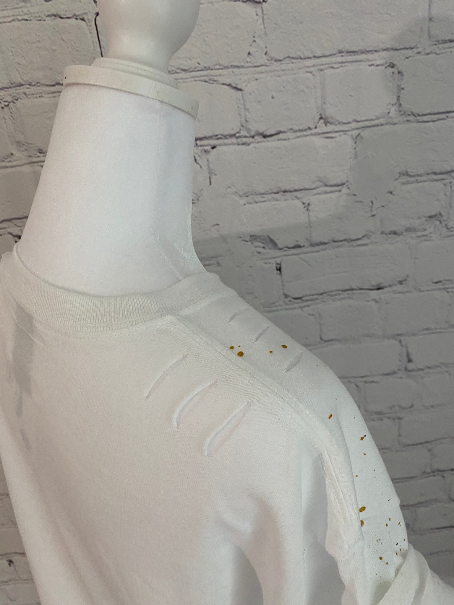 This is a distressed item and will require proper care, it should be washed inside out on gentle and hung to dry for the longest life possible of the garment.